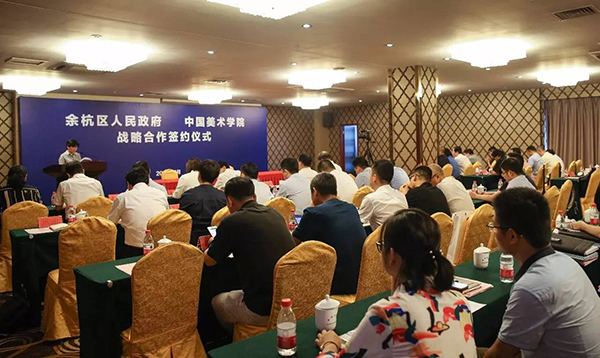 中国美术学院党政领导班子成员王赞、孙旭东、姜玉峰、杭间、高世名、应达伟、徐国强及相关院系、职能部门负责人,余杭区人大常委会主任汪宏儿,区政协主席阮文静,区委副书记、政法委书记王进,常务副区长祝振伟,以及区相关部门负责人出席签约仪式。仪式由副区长许玲娣主持。