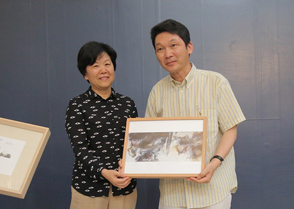 中国美术学院党委书记钱晓芳代表学院接受弗莱德·马丁(Fred Martin)教授的捐赠