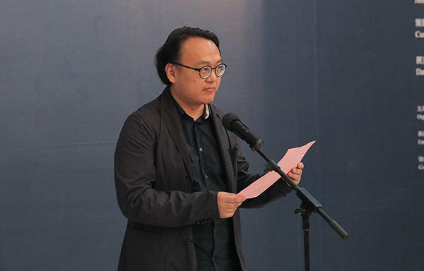 院长许江在致辞中首先代表学校祝贺「无所容形」画展隆重开幕,他说,马丁先生刚刚度过了他90岁的生日,就在今天,他将自己50年代以来的一批重要的作品、40余年来的力作共36件作品捐赠给遥远东方的中国美术学院,这不仅仅是一份简单的馈赠。马丁是美国战后抽象表现主义中代表西海岸文化崛起的一位「骁将」,他们这一代人以战后的胜利批判为星星之火,烧红自由理想的天空,使美国的抽象表现主义绘画带着饱满的运动意识,带着持续的人性解放的理想,带着浓厚强烈的现场现象,成为此起彼伏现代艺术浪潮的一座西风。与此同时,他又坚持西部社会的荒原影射和多元文化叠错交融的力量,作为当代本区文化关怀的产物而备受关注。此次捐赠的30多件作品代表着这种浓厚的文化特点,反复让我们重睹那个时代,领略西海岸闪闪发光的文化积淀而深深感动。