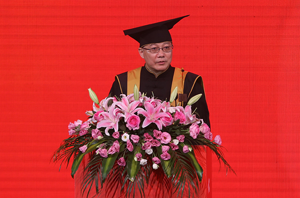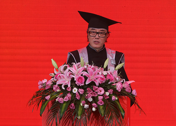教师代表、绘画艺术学院教授、首届「中国美术学院哲匠奖」获奖教师焦小健为毕业生提出了三点建议:第一,要学会「忘掉」,忘掉曾庇护自己的光环;第二,要学会「记住」,记住独属于自己的校园时光,因为那是你一生的珍宝;第三,要知道「自己要什么」,要实在做人,有真本事,接地气,最终学会在人群中进行独立思考。