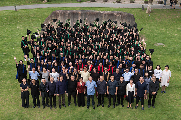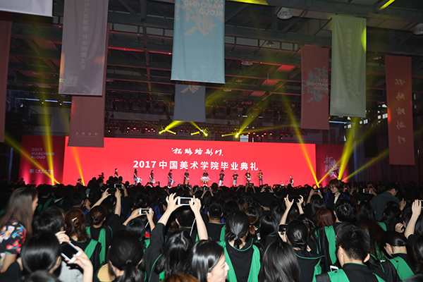 6月20日晚七点,象山校区8号楼体育馆中传出阵阵轰鸣的鼓点,「拓路踏歌行」——2017年中国美术学院毕业典礼在此隆重举行。自月前同样以「拓路踏歌行」为主题的毕业创作周开幕式以来,振聋发聩的鼓点之声就在我们内心不断地击打碰撞,不曾停止,终于在此刻凝练为一个充满仪式感的现场。