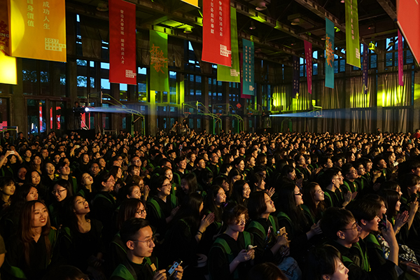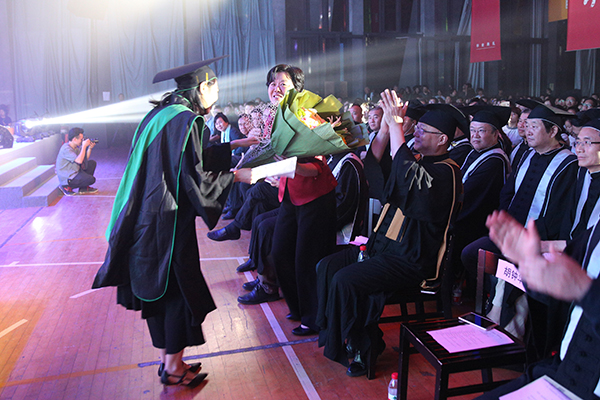 颁奖仪式后,毕业典礼在恢弘的校歌声与振奋的打击乐声中落幕,在场师生和家长则报以热烈的掌声。主场馆外,2号楼小剧场还集聚了500名毕业生家长观看毕业典礼同步直播。当天下午,学院领导先后与各院系毕业生合影留念。