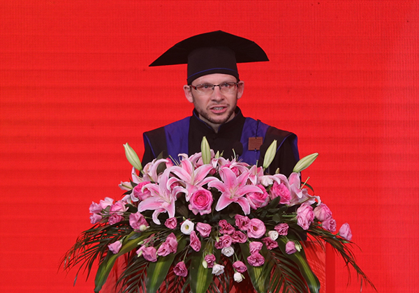 研究生毕业代表、手工艺术学院瑞士籍硕士毕业生里昂发言