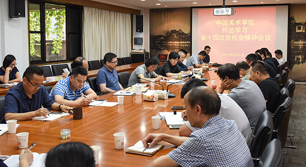 6月21日,中国美术学院召开党委中心组理论学习会议,传达学习省第十四次党代会精神。党委书记钱晓芳主持会议并作传达。