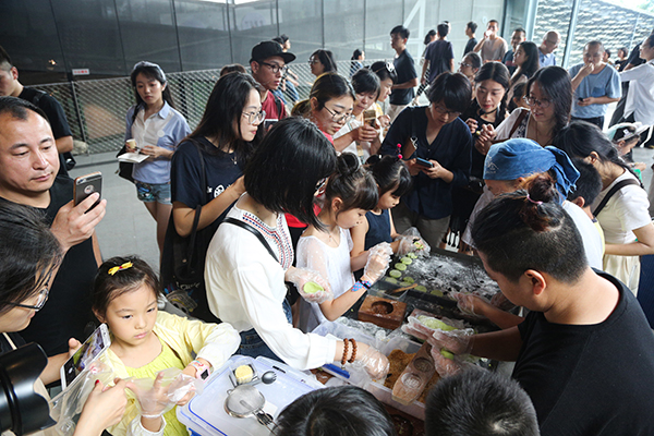 开幕式后,参加开幕式的嘉宾与参观者一起参加了“食寓吉祥——糕点制作品尝·茶会“体验活动。烹茶、做糕、收纳,老底子中国人的温暖日常。在现场与专业制作糕点的师傅一起亲手做糕、吃糕,立体式感受中国的传统民艺与民俗文化。比起常规式的参观,互动式参观体验,让人更难以忘怀。展览展至7月23日。