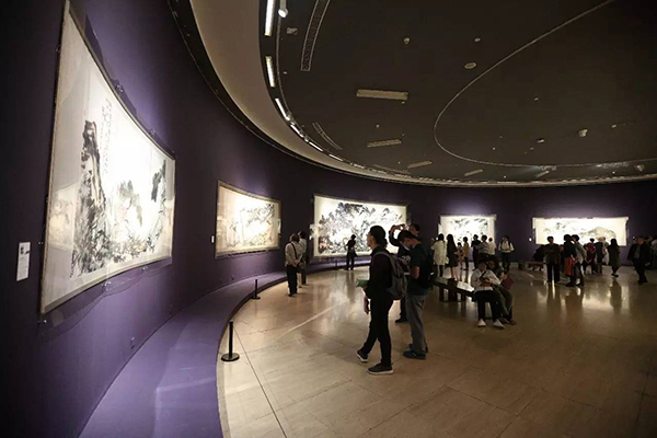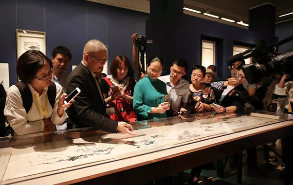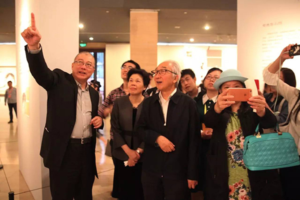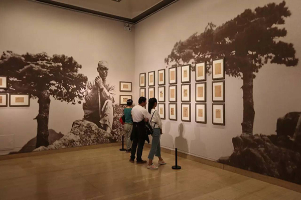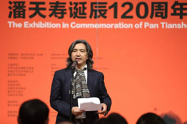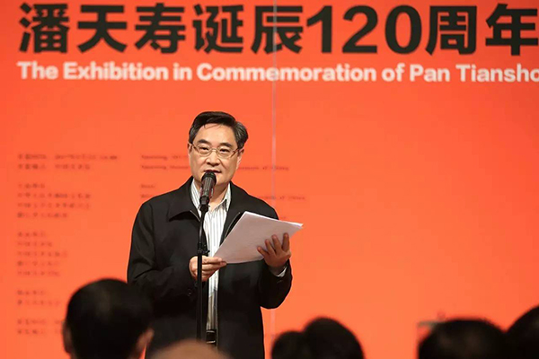 吴为山用「仰之弥高」四个字概括了潘天寿这座历史高峰。他说,潘天寿先生在风起云涌的外部环境和跌宕起伏的人生际遇中,孕育了铁骨铮铮而又温厚敦实的品格,造就出格局宏大、气象浑穆、儒雅雄阔的艺术。他创造性地融合「奇美」与「壮美」两个审美范畴,集隶家行家于一体,合南宗北宗为一家、纳工笔意笔为一脉,熔青绿水墨于一炉,创山水花鸟为一科。潘天寿先生在中国美术馆留下了20幅传世之作,中国美术馆也完成了给潘老塑一尊塑像的约定。此次大展上,我们有缘再次面对大师极具创造性和启示性的作品,必将重见澄澈的内心世界,又闻深沉的文化心语,复感刚健的人生意识,再品味高蹈的人格理想,使生命退场之后的精神力量穿越时空睽隔,在实现中华民族伟大复兴的中国梦的新的历史语境中自强、自信!