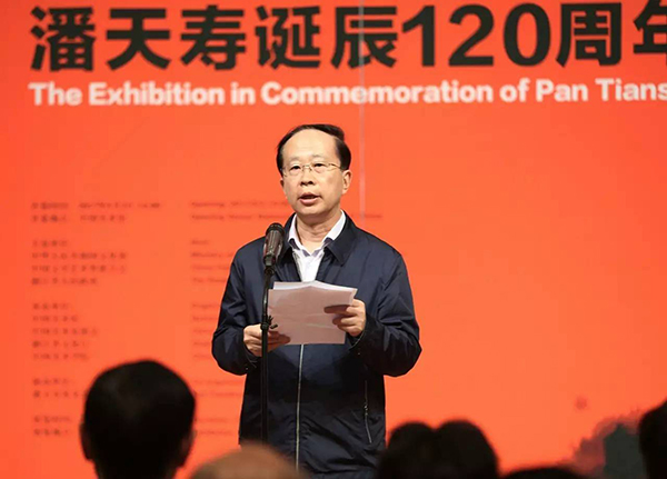 左中一首先致辞。他说,作为二十世纪杰出的国画家、美术教育家和美术理论家,潘天寿先生为我们留下了宝贵的精神财富。我们纪念潘天寿先生,就应当像他那样坚定文化自信,以理性自豪的态度传承优秀传统文化、兼收并蓄、博采众长、开拓创新,大力推动中华文化的创造性转化和创新性发展;就是要坚持人品、画品相统一,自觉坚守艺术理想,追求德艺双馨。以深厚的文化修养、高尚的人格魅力、文质兼美的作品赢得尊重,成为先进文化的践行者、社会风尚的引领者,在为祖国、为人民立德立言中成就自我、实现价值。广大文艺工作者要把他的丰厚遗产和精神融入到铸就民族复兴时代文艺高峰的征程中,努力创作更多无愧于时代、无愧于国家、无愧于民族的优秀作品,为实现中华民族伟大复兴中国梦不懈努力。