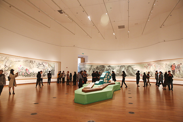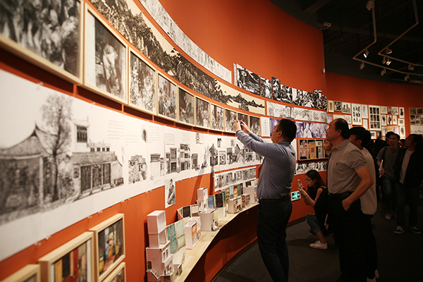 展览共分为奔赴前线、社会素描、绿水海报、治水长卷、河长造像、河流故事、在水一方七个板块,共展出我院师生们创作的近600组作品,千余幅河长肖像,更有一幅80余米的国画长卷惊艳亮相。