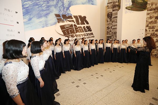 展览开幕式在中国美术学院大学生艺术团合唱由国立艺专(中国美术学院前身)两位校友阮璞填词、俞鹏作曲的《大禹纪念歌》中结束。