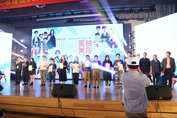5月4日晚6点半,为纪念建团95周年,贯彻全国高校思想政治工作会议精神、进一步推进学习习近平总书记讲话精神、做合格共青团员的“一学一做”活动,展现艺术、时代与公益与校园相结合的青年学子风采,践行校训精神,中国美术学院团委、青年志愿者协会在我院象山校区小剧场隆重举办纪念建团95周年表彰大会暨“益在国美”公益晚会。我院党委副书记胡钟华,有关职能部门、二级学院负责人和公益合作伙伴代表出席晚会活动。