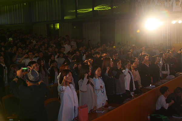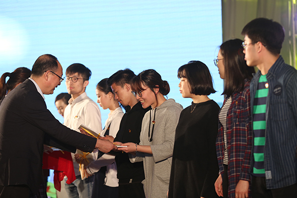 胡钟华在致辞中回顾了共青团的光辉历程与我院第一个团支部的诞生史,向获得表彰的先进集体和先进个人表示祝贺。胡钟华在致辞中指出,“五四”青年节前夕习近平总书记考察中国政法大学与师生座谈时发表了重要讲话,他号召广大青年师生要认真学习总书记讲话精神,以青年习近平为榜样,不忘初心跟党走,”要树立与这个时代主题同心同向的理想信念,勇于担当这个时代赋予的历史责任”,”立志做大事”。并向全体师生提出三点希望:一是弘扬五四精神,不忘入团初心。中国美术学院的团员青年,要牢牢记住历史赋予的使命,重温入团誓词让我也感受到青年师生们的青春活力,希望大家不忘初心,坚定理想信念;二是围绕学校发展,贡献青春力量。当前,学院正努力争创双一流,青年师生在其中必然是主角,一个大学有没有前景,就是看青年教师、青年学生有没有前景。建设世界一流大学,就必须坚持和发扬学院特色,这也是我们坚持文化自信,“顶天立地”的关键;三是注重全面发展,实现人生价值。近年来,学院积极构建“以大学望境化人、以‘哲匠’精神树人、以东方艺术立人”的发展蓝图,青年兴则国家兴,青年强则国家强。各单位、各级党团组织要一如既往地关心青年、爱护青年,为青年成长成才、实现人生抱负搭建舞台、创造环境,切实把青年的积极性引导好、保护好、实现好、发挥好。