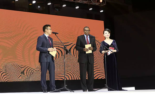 中国工业设计协会会长、世界工业设计大会主席刘宁,世界设计组织主席Mugendi M'Rithaa共同揭晓「金智奖」