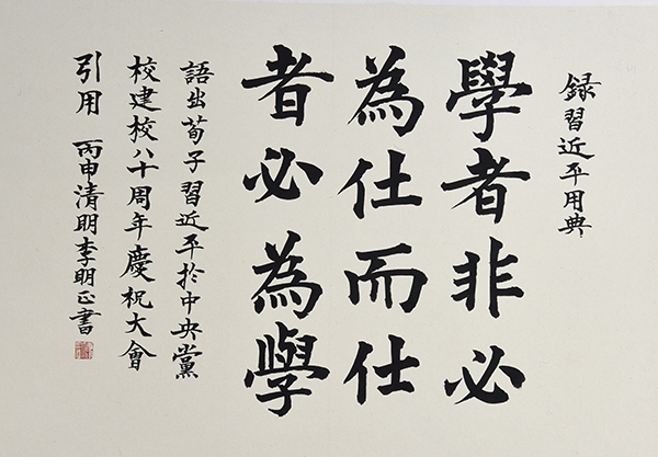为深入学习贯彻习近平总书记五四讲话精神,进一步活化传统,继承中华民族优秀传统文化,弘扬时代精神,中国美术学院特举办第三届书法节活动。展览由中国美术学院团委、中国画与书法艺术学院、专业基础教学部联合承办,各教学单位、各级团学组织协办。经过征集、筛选评审,最终展出89件习近平用典学生优秀书法作品。