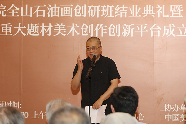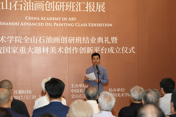 全山石在致辞中感谢了中国美院领导对创研班的支持与史学家、艺术专家们的帮助。他说,本次展览是向大家汇报两年的学习成果,此次创研班虽然告一段落,但艺术追索却永无止境,大家还得不断努力。跋涉与追索。希望大家对创研班提出批评和指正。