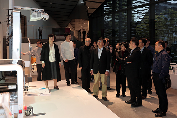 4月7日下午,浙江省副省长冯飞一行来中国美术学院考察调研,并听取了关于2017年第二届中国设计智造大奖工作情况的汇报。浙江省政府副秘书长李岩益,省经信委副主任马锦跃,省财政厅副巡视员罗跃琴,以及省政府办公厅工业处、省经信委生产性服务业处、省财政厅教科文处、省新闻广电出版局报刊处、省委宣传部新闻出版处等相关负责人,中国美术学院党委书记钱晓芳,院长许江,副院长姜玉峰、杭间,党委委员、党院办主任徐国强,中国设计制造大奖组委会及相关部门负责人陪同考察并参加汇报会。