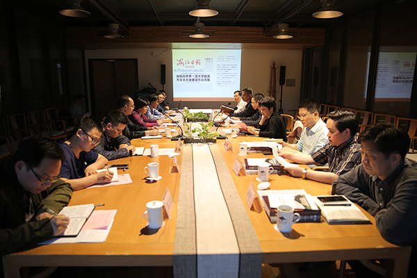 4月19日下午,中央政策研究室副秘书长、文化研究局局长方江山、文化研究局副局长邓正刚一行四人在浙江省委教育工委书记何杏仁、省教育厅组织处、统战处、宣教处负责人的陪同下到中国美术学院开展高校思想政治工作的调研工作。中国美术学院党委书记钱晓芳,党委副书记胡钟华,副院长王赞,党委委员、组织人事(统战)部长应达伟及党院办、宣传部、学工部、社科部相关负责人一起参加了调研座谈会。
