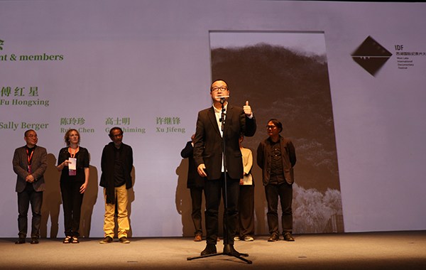 大会评审团主席伊夫·让诺(法国),携评审团委员们登台亮相并为闭幕式致辞,他用“亲切的朋友”来形容评审团之间日渐加深的友情。作为奥斯卡金像奖“最佳纪录片”获得者,伊夫·让诺(法国)先生在回顾了本次纪录片大会历程后表示,评审团成员具有多元文化和多元背景,但是有一点是完全相同的,他们都是纪录片的制作人、创作者,最终评审结果是在获得评审团委员们的一致同意下产生的。