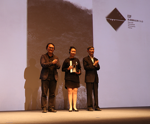 浙江省广电集团副总编、浙江省纪录片协会会长顾顺坤,评审团委员、中国美术学院副院长高世名为Tiffany Hsiung(加拿大)颁奖