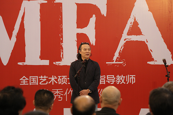 曹意强在致辞中从学位设置的角度切入,剖析当下艺术专业学位研究生教育在艺术学科的研究和教学方面所面临的问题,并探讨本次展览对于艺术教育的重要意义——一个艺术硕士研究方向的新的可能。他说,艺术院校是集创作、研究、教学三位一体的高等教育机构。按其性质,有两种类型的学位,一种是专业型学位,另一种是研究型学位。高等艺术教育的终极目标是培养有学术、有思想的创作人才。