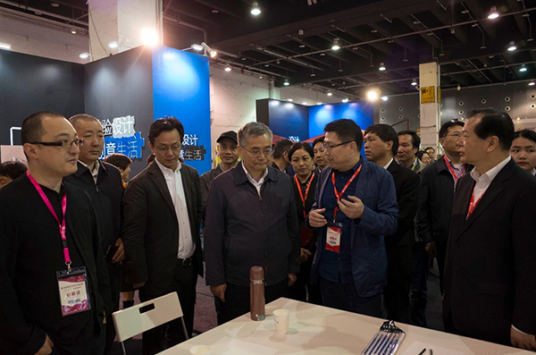 上午9点,文化部副部长项兆伦和浙江省文化厅党组书记、厅长金兴盛、中国国际贸易促进委员会副会长王锦珍、义乌市市长王毅等领导在中国美术学院副院长杭间的陪同下,莅临参观“最设计——中国美院馆”,并对最设计展览给予高度评价。项兆伦指出中国美院作为全国高等艺术院校之一,在文创产品的开发和设计领域起到了引领作用,具有前瞻性的探索和思考。项兆伦希望中国美院能在新农村建设的大环境下运用设计思维改造提升人民的生活,建设一个通过设计来服务社会的设计科研机构。