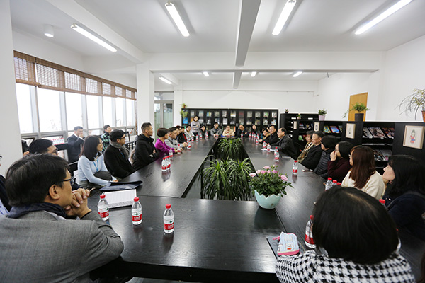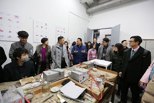 胡钟华首先致欢迎辞,并向来宾介绍了学校的历史沿革、发展概况和学科建设等情况。双方就两地青少年的美术教育进行了的座谈交流,并深入了解了面向香港学生的招生、培养政策以及他们在校学习生活等情况。随后,代表团一行饶有兴致地参观了学校附中学生的作品展示和手工艺术学院的陶瓷、首饰、玻璃等专业实验室。代表团团员们纷纷表示,通过参观访问和深入交流,深切感受到中国美院学科发展的提升,很有收获和启发,并希望今后能在各方面多多交流与合作。