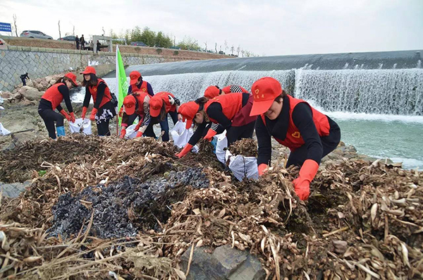 松阳县在实施「五水共治」行动中,涌现了出了一批治水先锋,他们来自各行各业,利用周末节假时间,自发组织清理河道。