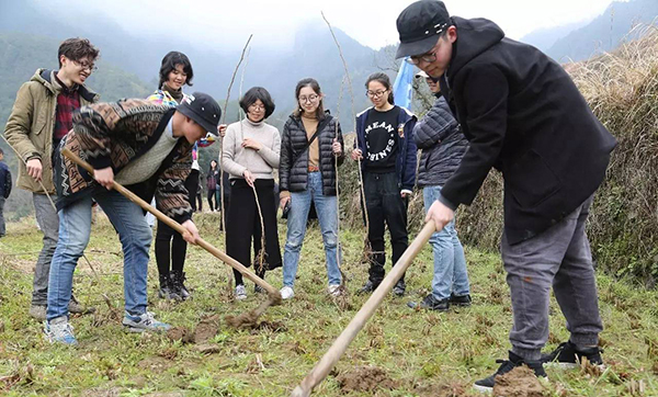 恰逢植树好时节,鹤盛镇政府、上日川村委会与基础部师生还一起开展了一场植树活动。
