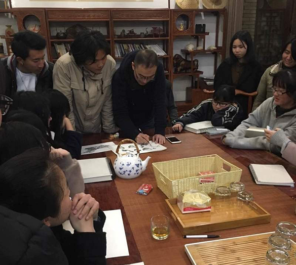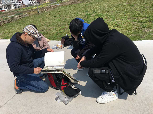 曹晓阳说,「我们把学生分组,围绕各自关注的点,访谈的对象,产生各种各样的话题,每天晚上都要分组探讨,这种学习方式也是对学生最好的艺术引导。这种思考就不局限在学生手头技艺的问题上了。技艺就到了具体的社会里面去了。艺术要直面现实,直面现实的目的不是画笔对社会有多大的直接帮助,而是通过画笔,影响了每一个个体的人。因为五水共治最后是从每一个个体到人心的改变。当身处其中的每一个人都树立起这个保护的意识,我们的环境自然就好了。」