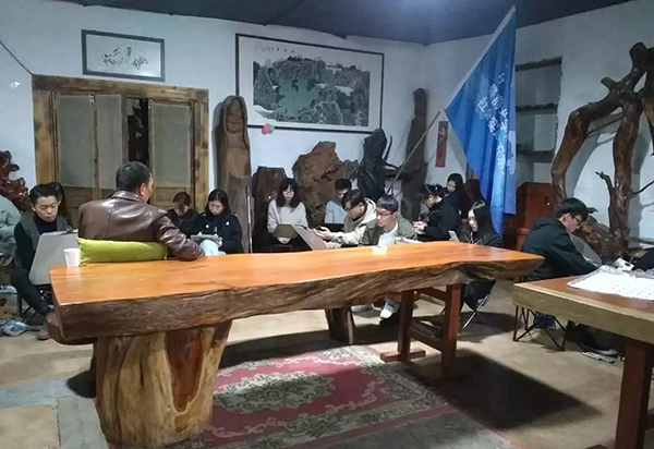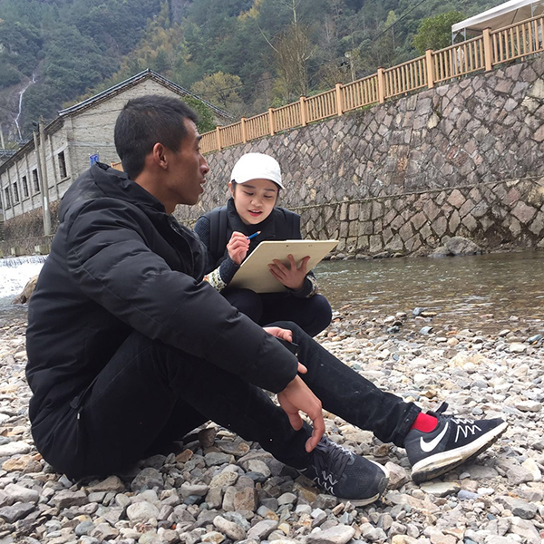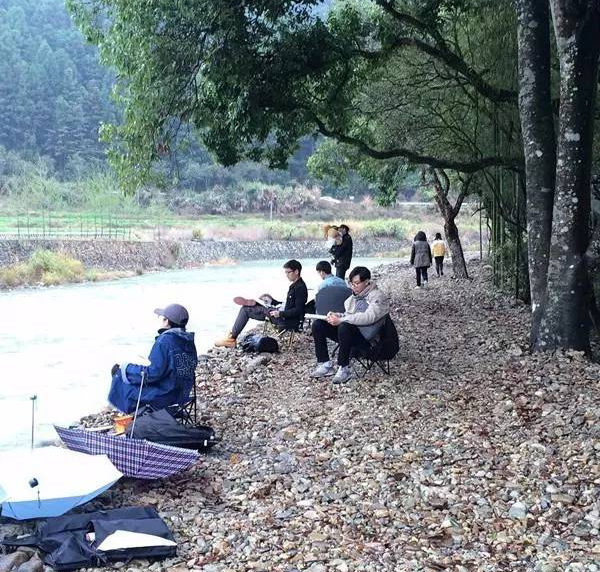 于是,采风团队的师生就围绕这个线索展开调研。图媒专业的学生跟踪当地的青年俱乐部,针对河工河长、河小二展开创作:今天的青年人如何看待环境问题,如何参与到五水共治的工作中去,他们的切身体验,围绕一个个鲜活的河小二的故事,展开参与治水的叙事。设计专业的学生,针对当地的民宿经济做调研,探讨人水共生的关系;造型专业的学生主要跟踪6名由当地退伍军人组成的护溪员,他们的工作是防止挖沙、炸鱼,展开救援等,这样,学生下乡采风的内容就一下变得实在起来。