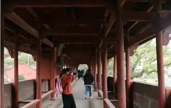 位于兰溪市梅江镇聚仁村的通洲桥,也叫古廊桥。始建于明代,因源于浦兰交界的桐梧岭,五里岭之水入梅溪,流经通洲桥至洲上,而后汇入兰江,故名「通洲桥」。同学们在通洲桥上拿起画笔和相机,静静勾勒描绘梅溪美丽的风景。