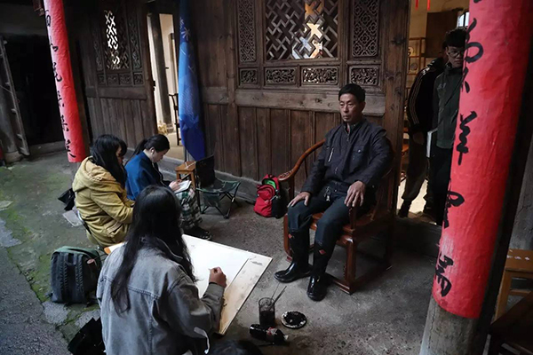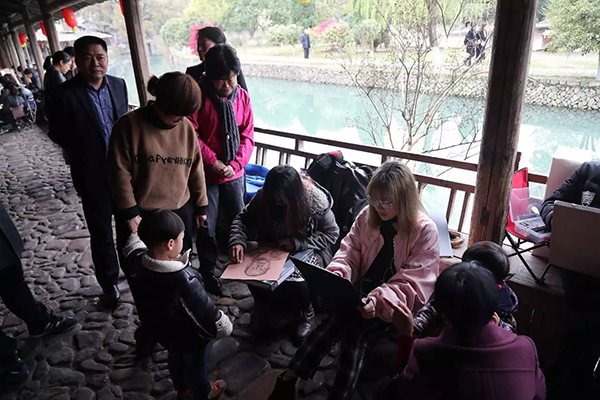 在丽水庆元写生基地,美院师生也开展了为河长画肖像的活动。