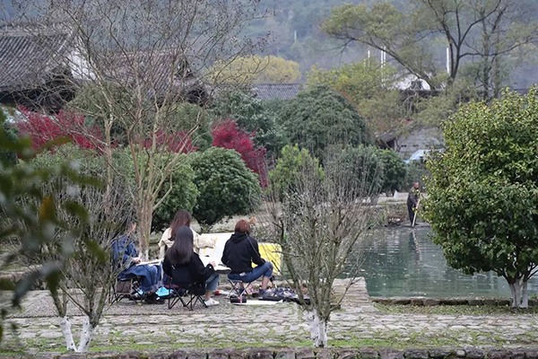 仙居之行第一站是位于神仙居脚下的淡竹乡下叶村,永安溪支流在此地穿境而过,境内水秀山清,无工业污染,有「天然氧吧」之称。得天独厚的好山好水,使得当地民宿经济迅速崛起,远道而来的师生就在一家名为「淡竹记忆」的古朴民宿住下。