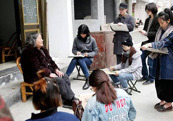 自3月13日起,中国美术学院教师林绿蔚、陈卓毅带领基础部造型分部近60名学生进驻松阳县乡村798写生创作基地,开展为期20天的「最前线——‘五水共治’中国美术学院下乡教学创作活动」。采风期间,美院师生为当地的河长河工画像,用手中的画笔表达对这些治水英雄的敬意。