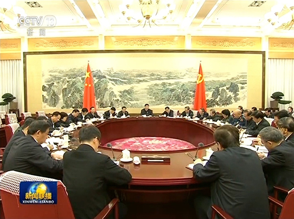这十几年来,美院人看《新闻联播》总有一种特殊的情感。每当《新闻联播》播出党和国家领导人在中南海怀仁堂召开重要会议的镜头时,高墙竖壁上那件由美院人创作的巨幅山水画——《江山万里》总是格外引人瞩目。