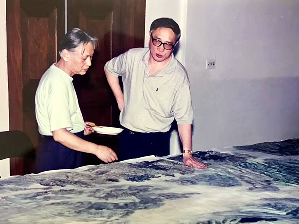 童中焘(左)与卓鹤君(右)在创作中,1999