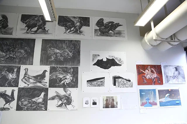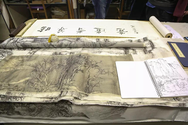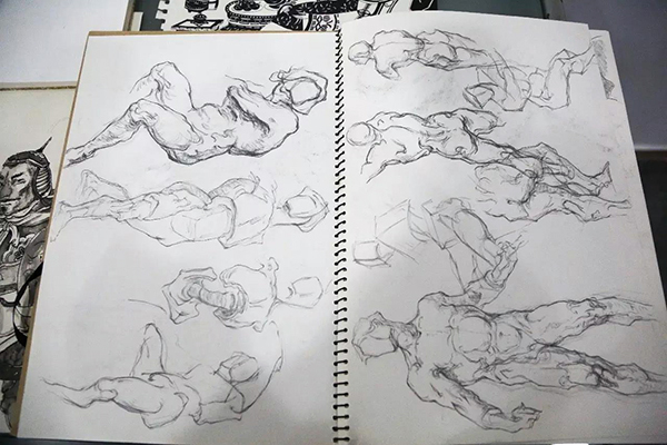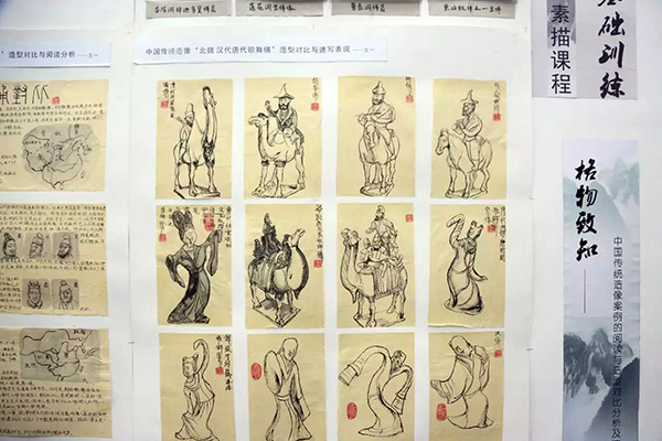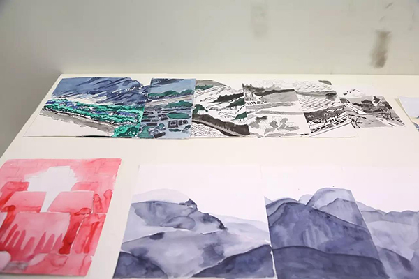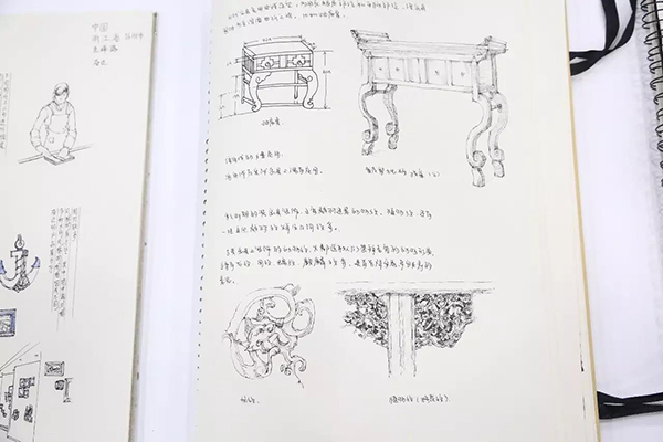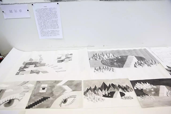 许江认为,中国美术学院的教学不仅重视课堂作业展示,也重视教学生活的文案展示,既有手绘图本的展示,又有生动的采风速写,有创作草图的构想,也有书写的文字思考,生机勃勃,琳琅满目。
