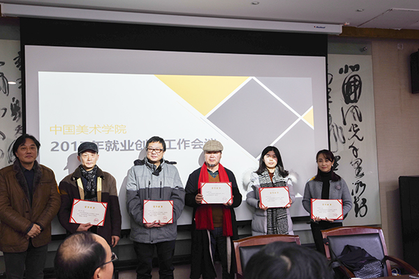 会上,院领导向杭州国美建筑装饰设计院董事长王炜民老师颁发了捐赠证书,还对学院2016年就业创业工作先进集体、先进个人及优秀创业导师进行表彰。建筑艺术学院、设计艺术学院的代表,从组织暑期实训营、拓展校企合作、提供针对性指导、培养正确就业创业观、整合全方位资源、搭建精准推荐平台、开发互联网定制服务等方面作了经验交流发言。