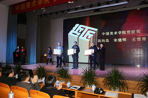颁奖典礼上,中国美术学院党委书记钱晓芳宣读《关于公布首届中国美术学院哲匠奖获奖人选的决定》,宣布艺术人文学院教授范景中获哲匠金奖,绘画艺术学院教授焦小健、雕塑与公共艺术学院教授施慧获哲匠银奖,中国画与书法艺术学院教授陈向迅、文创设计制造业协同创新中心教授宋建明、设计艺术学院教授王雪青获哲匠奖。