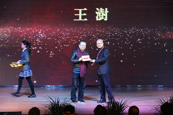 随后隆重举行中国美术学院长江学者特聘教授表彰仪式。中国美术学院院长许江向学院首位「长江学者」、「万人计划」入选者王澍颁奖。