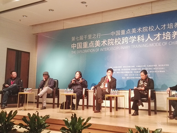 下午两点,在清华大学美术学院A301报告厅,举行了题为“中国重点美术院校跨学科人才培养模式的探索”的研讨会。研讨会由清华大学美术学院副院长张敢主持,王赞、中央美术学院设计学院副院长宋协伟、天津美术学院副院长郭振山、广州美术学院副院长林蓝、四川美术学院副院长张杰、湖北美术学院副院长许奋等出席,参加本次研讨会的还有来自各兄弟院校的教师及学生代表、以及清华大学美术学院的学生。
