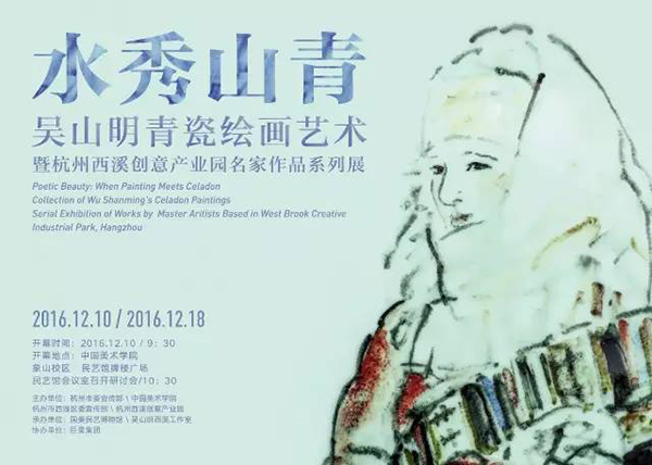 2016年12月10日,「水秀山青——吴山明青瓷绘画艺术展」在中国美术学院民艺博物馆开幕。展览由杭州市委宣传部、中国美术学院、杭州市西湖区委宣传部、杭州西溪创意产业园主办,中国美术学院民艺博物馆、吴山明西溪工作室承办。