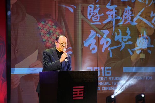 王赞在致辞中表示,本次表彰典礼是学院坚守“三美”育人理想、坚持“立德树人”工作中所取得的丰硕成果的一次展示。同学们勤奋研创、博雅精进,在2016年取得了令人骄傲的成绩。学院正在向建设“双一流”大学目标挺进,希望广大学生能够以先进为榜样,锐意进取,开拓创新,勇攀高峰,共同为创建“双一流”大学而努力奋斗。