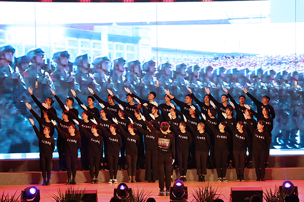 全场齐唱国歌后,在新生四营带来的《突破封锁线》和教工合唱团献上的《红星歌》中,歌会正式拉开序幕。党委班子献唱《七律长征》,此后,老干部、机关教工、各教学单位以及新生阵营都以激扬的歌声、饱满的热情,为我们带来一场振奋人心的听觉盛宴。