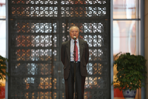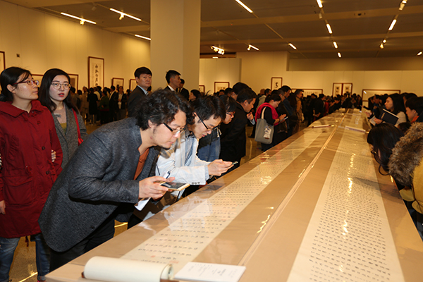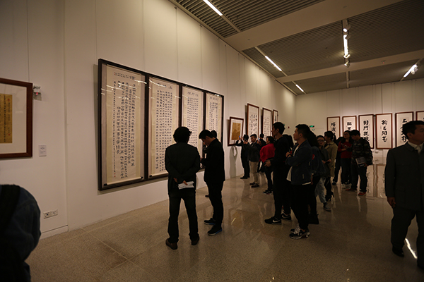中国美术学院部分党政领导及教师出席开幕式。本次展览由中国美术学院、浙江省文学艺术界联合会主办,汇集了先生各个时期的书法代表作品100余件,许多是2011年大型个展后的新作,是他以八十高龄,持续在书学高峰攀援探求的明证,充分展示了一代学人守护传统、守望本体,融会贯通,含弘光大的文化态度。