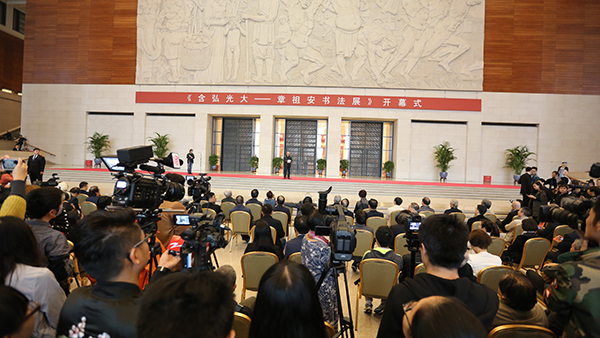 2016年10月15日上午10时,“含弘光大——章祖安书法展”在中国国家博物馆隆重开幕,文化部原部长、国家艺术基金会理事长蔡武宣布展览开幕。中国美术学院院长许江,中国书法家协会分党组书记、副主席陈洪武,中央美术学院教授、博导邱振中先后致辞,章祖安先生致答谢辞。开幕式由中国美术学院副院长王赞主持。中国美术学院党委副书记胡钟华,副院长高世名,原副院长孟云生出席开幕式。