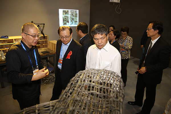 中共杭州市委常委、宣传部长翁卫军,浙江省文化厅厅长金兴盛在中国美术学院院长许江陪同下参观“最设计•中国美院馆”