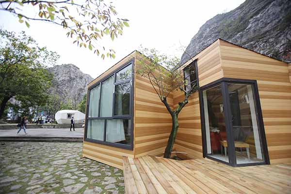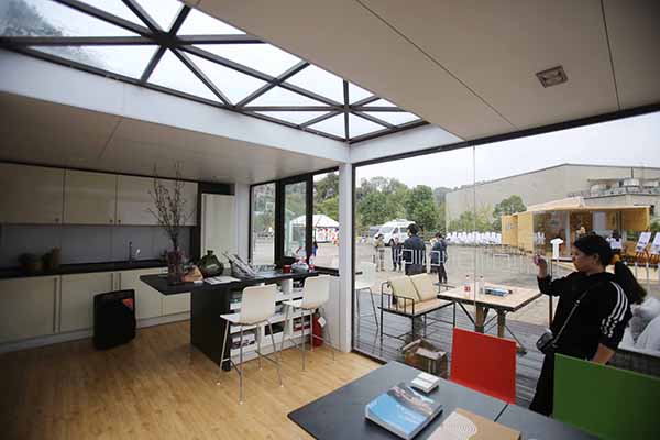 新闻发布会后,媒体朋友们一同参观了本届设计周的亮点展览之一“飞屋BOX——可移动房屋展”。