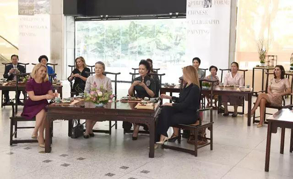 国家主席习近平夫人彭丽媛5日邀请阿根廷总统夫人阿瓦达、印度尼西亚总统夫人伊莉亚娜、老挝国家主席夫人坎蒙、墨西哥总统夫人里韦拉、土耳其总统夫人埃米奈、加拿大总理夫人索菲、新加坡总理夫人何晶、泰国总理夫人娜拉蓬、欧洲理事会主席夫人玛乌格热塔、联合国秘书长夫人柳淳泽、世界贸易组织总干事夫人玛利亚、国际劳工组织总干事夫人卡琳娜等出席二十国集团领导人杭州峰会外方代表团团长夫人参观中国美术学院。