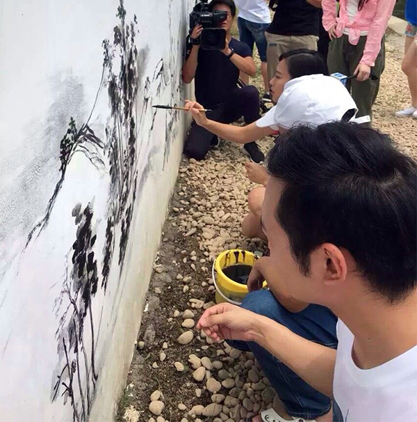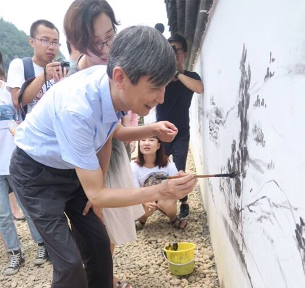 据悉,今夏,我院共有近50支社会实践小分队奔赴全国、全省各地开展“齐心服务G20,两美浙江我践行”、“时代长征”等主题社会实践活动。浦江站是我院与浙江广电集团青年共同开展社会实践活动六站中的的最后一站,也是我院在全省近30个公益墙绘服务点的重要一站,队员来自国画、书法、壁画、建筑设计、景观设计、影视、视觉传达、玻璃首饰、书画鉴定等专业。