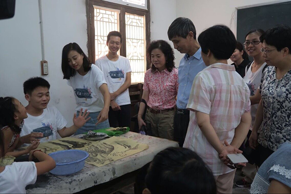 钱晓芳还与参与实践活动的师生进行了交流,在了解到浦江站实践活动还吸引了数位金华、浦江籍的应届毕业生、在校生参加时,钱晓芳表示,同学们积极参与服务家乡的实践活动很有意义,浦江、诗书画之乡,美丽,整洁,带给美院师生许多惊喜,同时也体会到了地方政府对美院的期待。她要求学院相关部门要进一步搭建好大学生利用专业特长服务社会的平台,利用好社会实践做好青年学生思想引领,坚持积极正确的价值导向,全员育人,营造良好的社会实践氛围,并勉励青年师生继续发扬中国美术学院优良传统,在社会实践中受教育、长才干、做贡献。研究生二年级的张媛媛同学的家就是在礼张村,在得知学院组织团队赴礼张村开展社会实践,她积极加入,并成为团队的骨干,“此次能和老师同学一同“家燕归巢”利用所学服务自己的家乡感觉到无比自豪,同时感谢学院领导亲临实践地点给大学生送来鼓励和支持。”张媛媛激动地说。